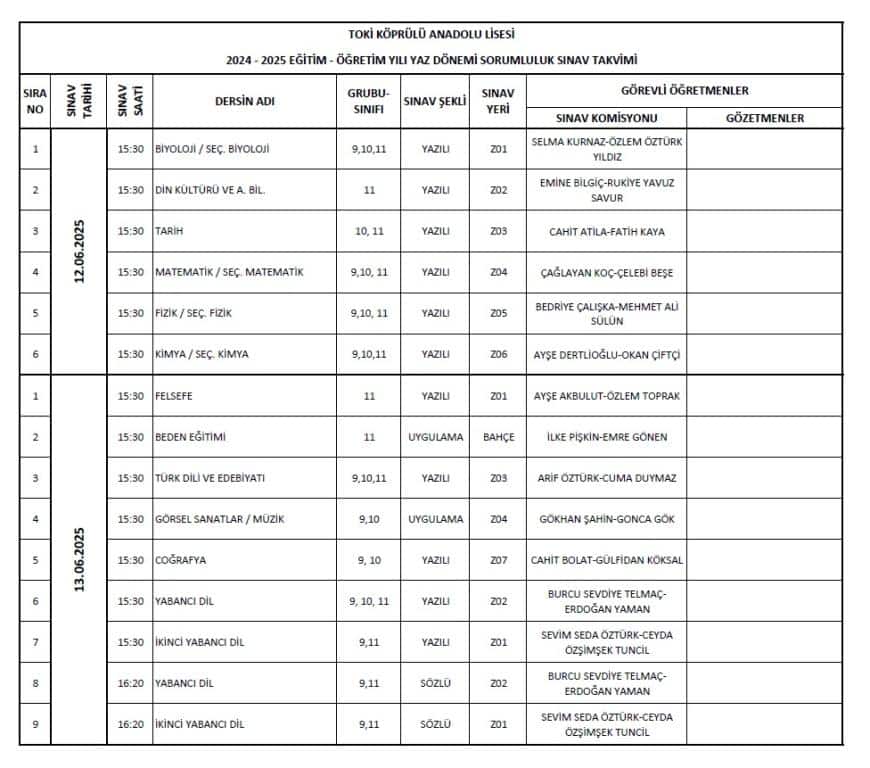 2024-2025 EÖY YAZ DÖNEMİ SORUMLULUK SINAVI LİSTELERİ